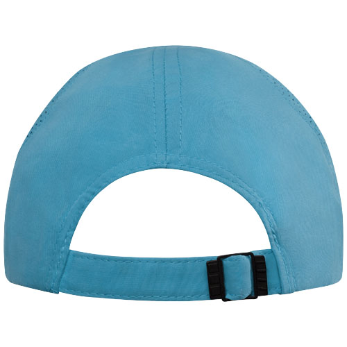 Nachhaltige Kappe für Werbezwecke. Vorgebogener Schirm mit Sandwichdesign. Gelaserte Belüftungslöcher. Schnallenverschluss aus Metall Mikrofaser 100% GRS zertifiziertes recyceltes Polyester, 110 g/m2.