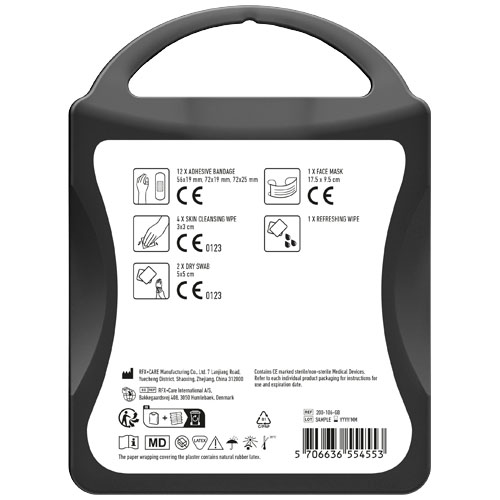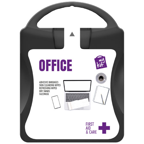Das MyKit Büro sollte in jedem Büro aufbewahrt werden, um auf kleine Unfälle oder Verletzungen vorbereitet zu sein. Inhalt: 12 waschfeste Pflaster, 2 trockene Tupfer, 1 Gesichtsmaske, 1 Erfrischungstuch und 4 Hautreinigungstupfer. Alle in diesem Set enthaltenen Erste-Hilfe- und Pflegeprodukte entsprechen den geltenden EU-Vorschriften. Der Preis beinhaltet Vollfarbdruck. PP Kunststoff.