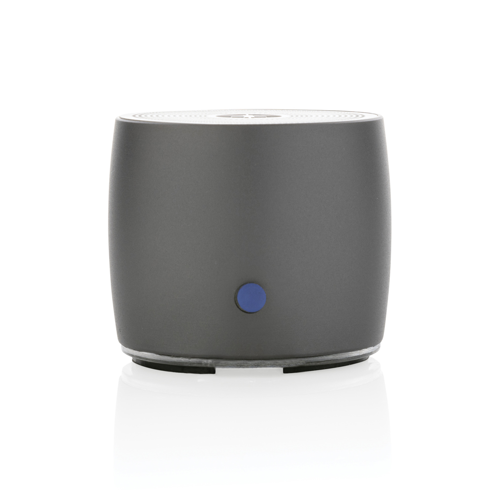 Small but powerful 3W wireless speaker made with RCS (Recycled Claim Standard) certified recycled aluminum and recycled ABS. Total recycled content: 28% based on total item weight. RCS certification ensures a completely certified supply chain of the recycled materials. Aluminum does not lose its characteristics in the recycling process and can be recycled endlessly. Including recycled type C charging cable made from RCS certified recycled TPE. Packed in FSC® mix packaging. The 500 mah battery allows a playtime up to 4 hours and can be fully re-charged in 2 hours. With BT 5.0 for smooth connection up to 10 metres. Item and accessories PVC free.