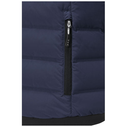 Heißsiegelsteppung. Füllung aus GRS und RDS zertifizierten Recycling Daunen. Windschutz innen mit Kinnriemen Elastische Rippenbündchen und Saum aus Flachstrick. Fronttaschen mit Reißverschluss. Leicht zu greifende Reißverschlusszieher. Aufhängeschlaufe aus Gummi mit Markenzeichen. Hauptetikett aus Heiß-Siebtransferdruck für Komfort ohne Etiketten 750T Woven doppellagiges Pongee 100% Polyester, 164 g/m2, Padding/filling, Down insulation: Responsible Down Standard (RDS) 90% Recycelte Daunen, 10% Recycelte Federn.
