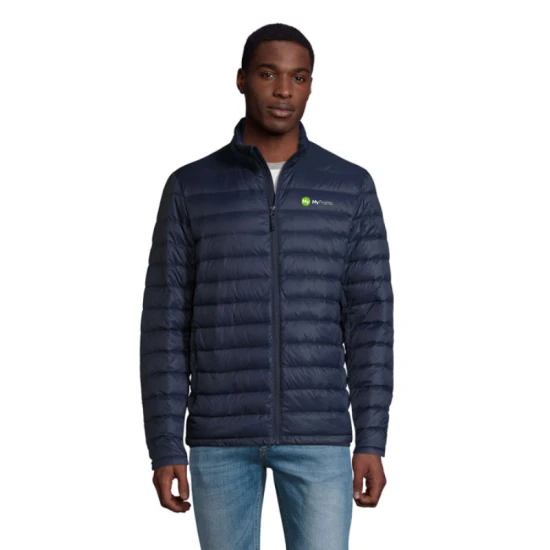 SOLS WILSON MEN. Leichte Jacke für Herren. Außenmaterial und Futter: 100% Polyamid. Wattierung: 60% Sorona, 40% recyceltes Polyester. POLYAMID 380T, Reißverschluss, 2 Fronttaschen mit Reißverschluss, 2 Innentaschen, niedriger Stehkragen, enganliegende Passform, In bag-Faltsystem mit Stopper. OEKO-TEX®. Verkauf nur mit Druck.