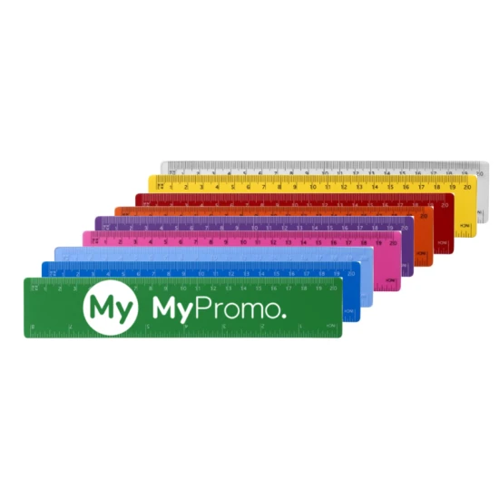 Flexibles, leichtes Kunststoff Lineal mit Markierungen in Zoll und Zentimeter. Bitte beachten Sie, dass die Linealmarkierungen zusammen mit Ihrer Druckvorlage aufgedruckt werden, unveredelte Lineale haben keine Markierungen und sind blank. PP Kunststoff.