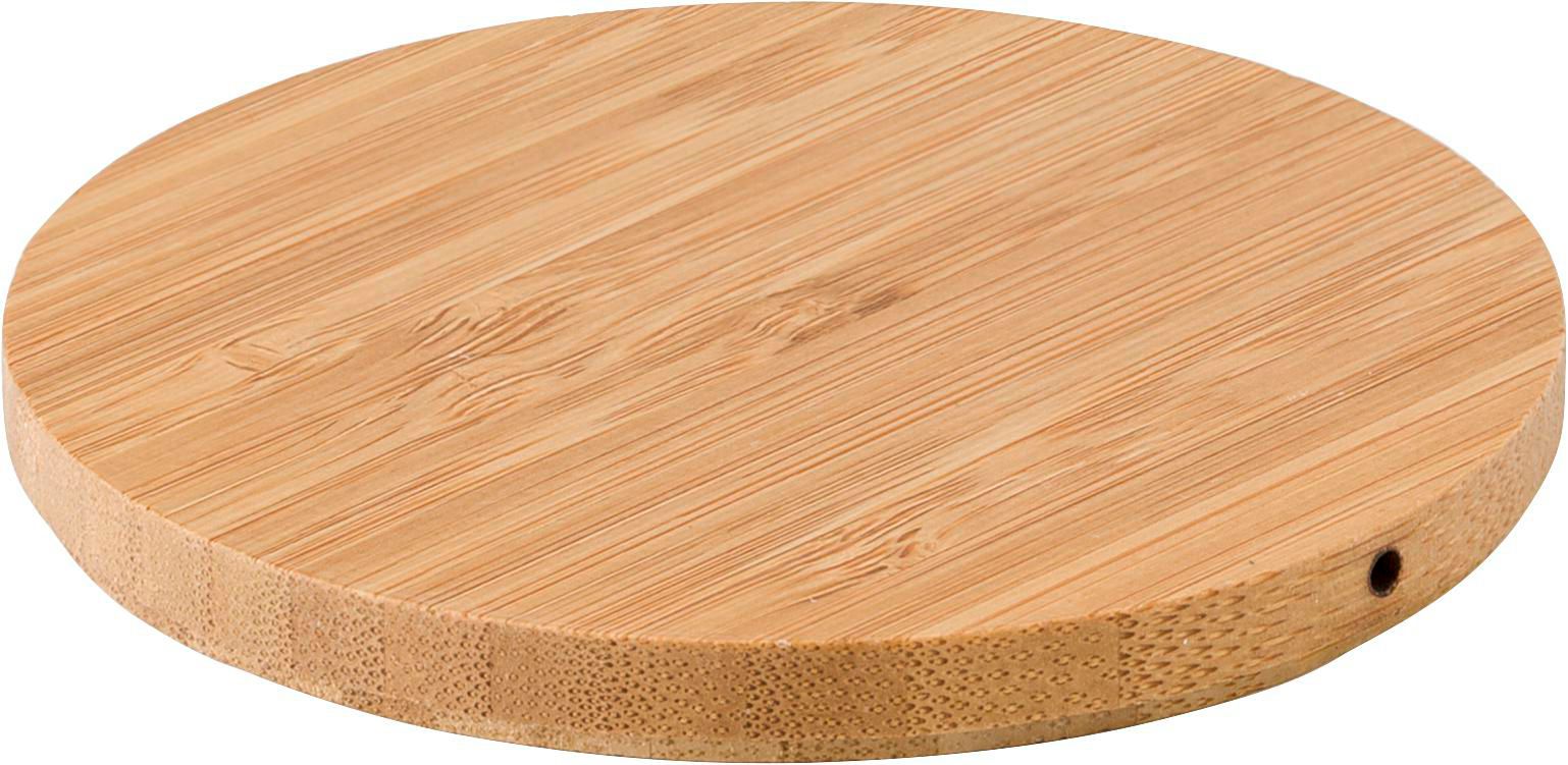 Wireless Ladepad 'Westminster' aus Bambus mit LED-Kontrollleuchte. Es lädt geeignete Geräte kabellos und hat einen Micro-USB-Anschluss zur Stromversorgung (inkl. Ladekabel). Eingangsleistung: 9V-2A, Ausgangsleistung von 15W.