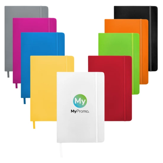 Das Spectrum-Notizbuch ist nicht nur ein unverzichtbares Büroutensil, sondern auch eine großartige Möglichkeit, Ihre Marke zu bewerben. Das Hard Cover Notizbuch hat ein soft-feel Einband und 96 linierte Seiten mit 60 g/m², ideal für schnelle Ideen oder lange Notizen. Das A5-Format ist praktisch, da es leicht in eine durchschnittliche Tasche passt. PVC beschichteter Karton.