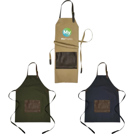 Schürze | rPET PU | Wasserabweisend | Fronttasche und verstellbares Nackenband | Farbdruck