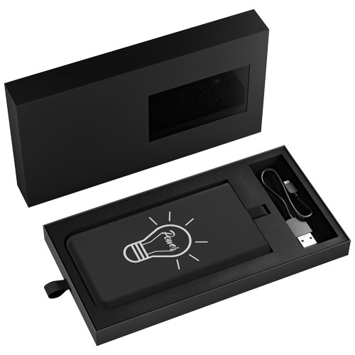 3000 mAh Powerbank mit leuchtendem Logo und mit integriertem 3-in-1 Kabel (Typ C, Android, iPhone). Sobald Sie die Powerbank berühren, leuchtet das Logo für 30 Sekunden auf. Es bleibt auch während des Ladevorgangs des Geräts beleuchtet. Wird in einer Geschenkbox mit Magnetverschluss geliefert. DC-Eingang/-Ausgang: 5 V/2 A. Größe: 112 x 62 x 11 mm. Gummi.