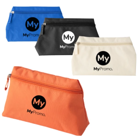 Kosmetiktasche aus Polyester (600D), mit Reißverschluss und Zipper mit Zugband in Materialfarbe