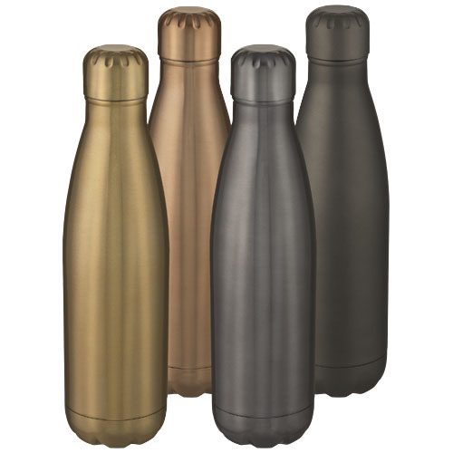 Vakuumisolierte Edelstahlflasche mit kultigem Design. Der isolierte 18/8 Edelstahl hält Getränke über mehrere Stunden heiß oder kalt. Geprüft und zugelassen nach deutschem Lebensmittelsicherheitsgesetz (LFGB) und auf Phthalatgehalt gemäß REACH Verordnung getestet. Mit einem Sockel, der in die meisten Getränkehalter passt, ist diese schlanke Wasserflasche ein perfekter Werbeartikel. Das Fassungsvermögen beträgt 500 ml. Verpackt in einer Geschenkbox aus Recyclingkarton. Edelstahl.